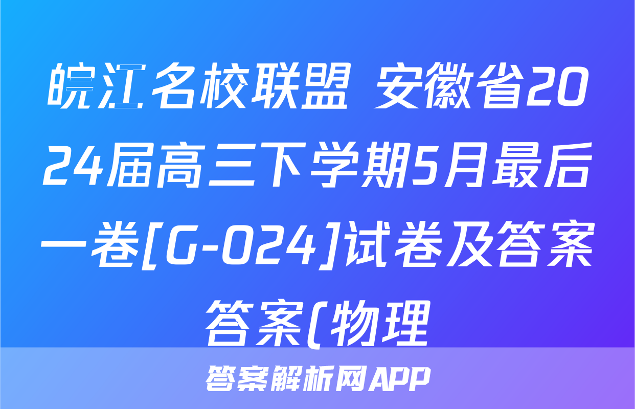 皖江名校联盟 安徽省2024届高三下学期5月最后一卷[G-024]试卷及答案答案(物理)正在持续更新,目前2024-2025英语周报答案网为大家整理了相关试题及答案,供大家查缺补漏,高效提升成绩。