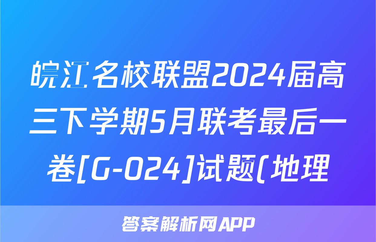 1、皖江名校联盟2024届高三下学期5月联考最后一卷[G-024]答案(地理)