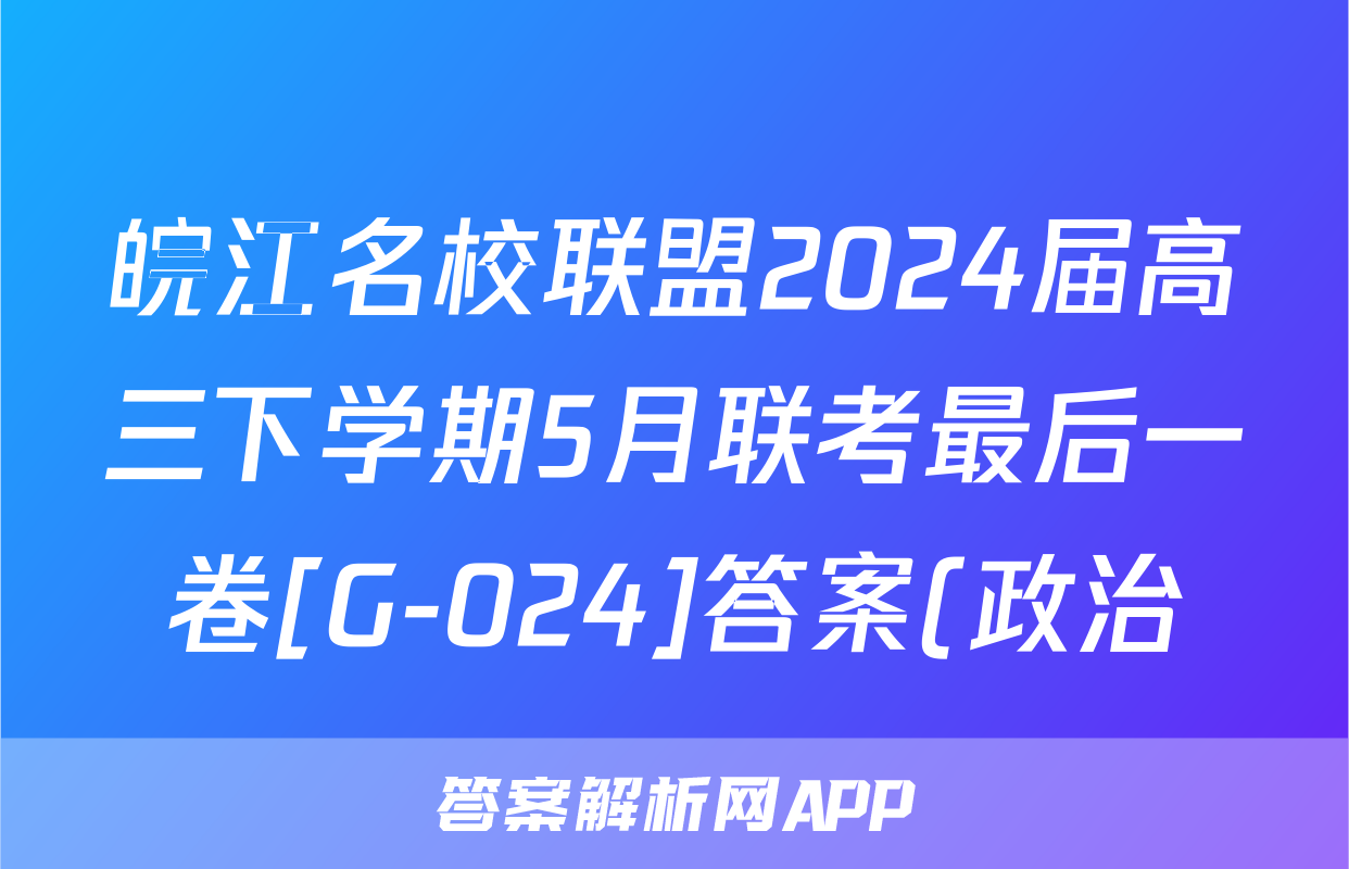 皖江名校联盟2024届高三下学期5月联考最后一卷[G-024]答案(政治)正在持续更新,目前2024-2025英语周报答案网为大家整理了相关试题及答案,供大家查缺补漏,高效提升成绩。