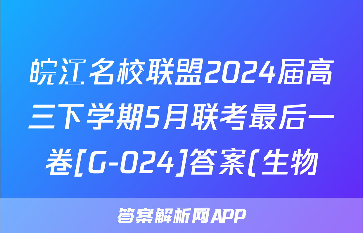 皖江名校联盟2024届高三下学期5月联考最后一卷[G-024]答案(生物)正在持续更新,目前2024-2025英语周报答案网为大家整理了相关试题及答案,供大家查缺补漏,高效提升成绩。