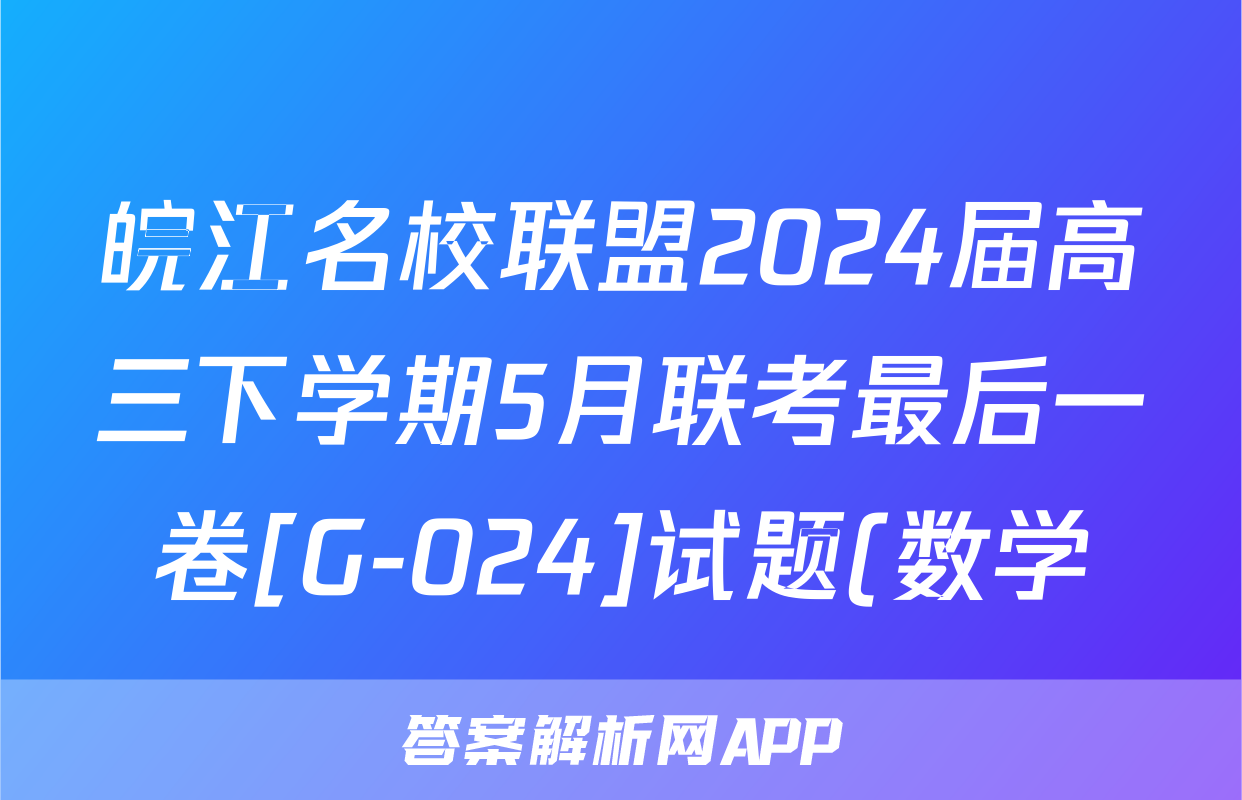 皖江名校联盟2024届高三下学期5月联考最后一卷[G-024]试题(数学)正在持续更新,目前2024-2025英语周报答案网为大家整理了相关试题及答案,供大家查缺补漏,高效提升成绩。