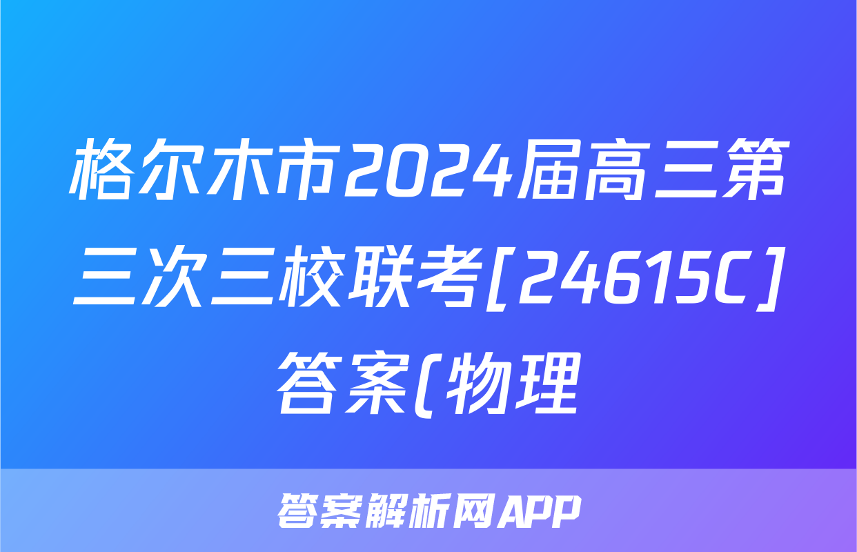 格尔木市2024届高三第三次三校联考[24615C]答案(物理)正在持续更新,目前2024-2025英语周报答案网为大家整理了相关试题及答案,供大家查缺补漏,高效提升成绩。