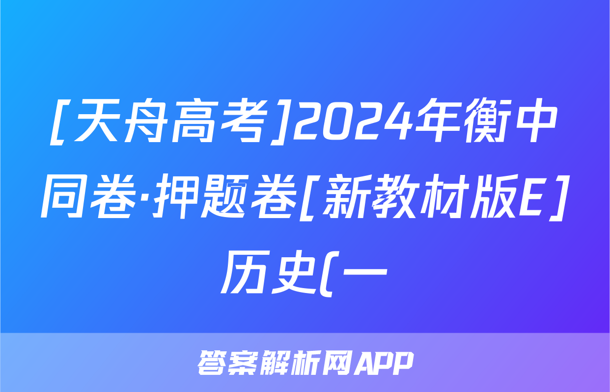 [天舟高考]2024年衡中同卷·押题卷[新教材版E]历史(一)1试题