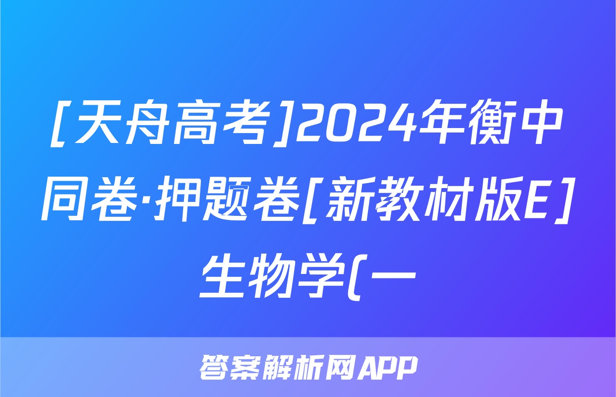 [天舟高考]2024年衡中同卷·押题卷[新教材版E]生物学(一)1试题正在持续更新,目前2024-2025英语周报答案网为大家整理了相关试题及答案,供大家查缺补漏,高效提升成绩。