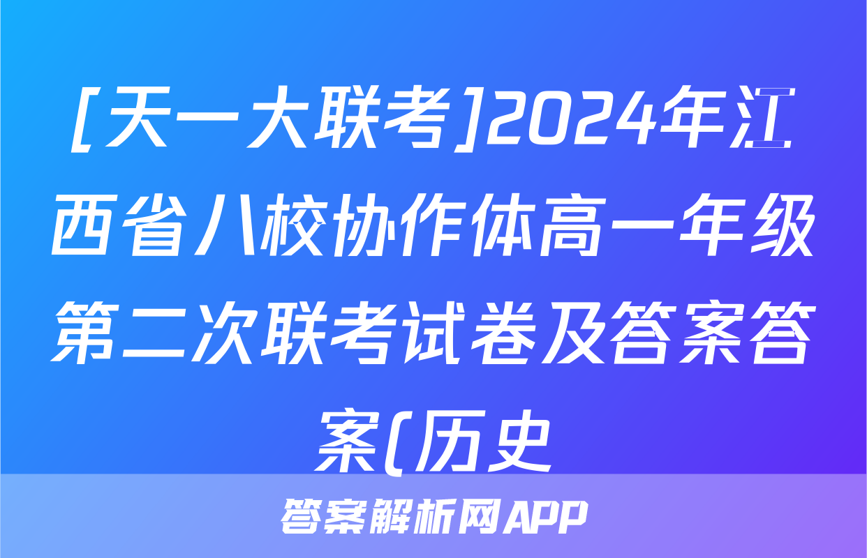 [天一大联考]2024年江西省八校协作体高一年级第二次联考试卷及答案答案(历史)正在持续更新,目前2024-2025英语周报答案网为大家整理了相关试题及答案,供大家查缺补漏,高效提升成绩。