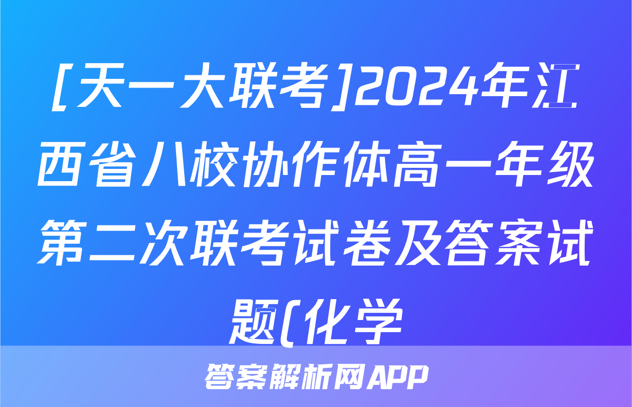 [天一大联考]2024年江西省八校协作体高一年级第二次联考试卷及答案试题(化学)正在持续更新,目前2024-2025英语周报答案网为大家整理了相关试题及答案,供大家查缺补漏,高效提升成绩。