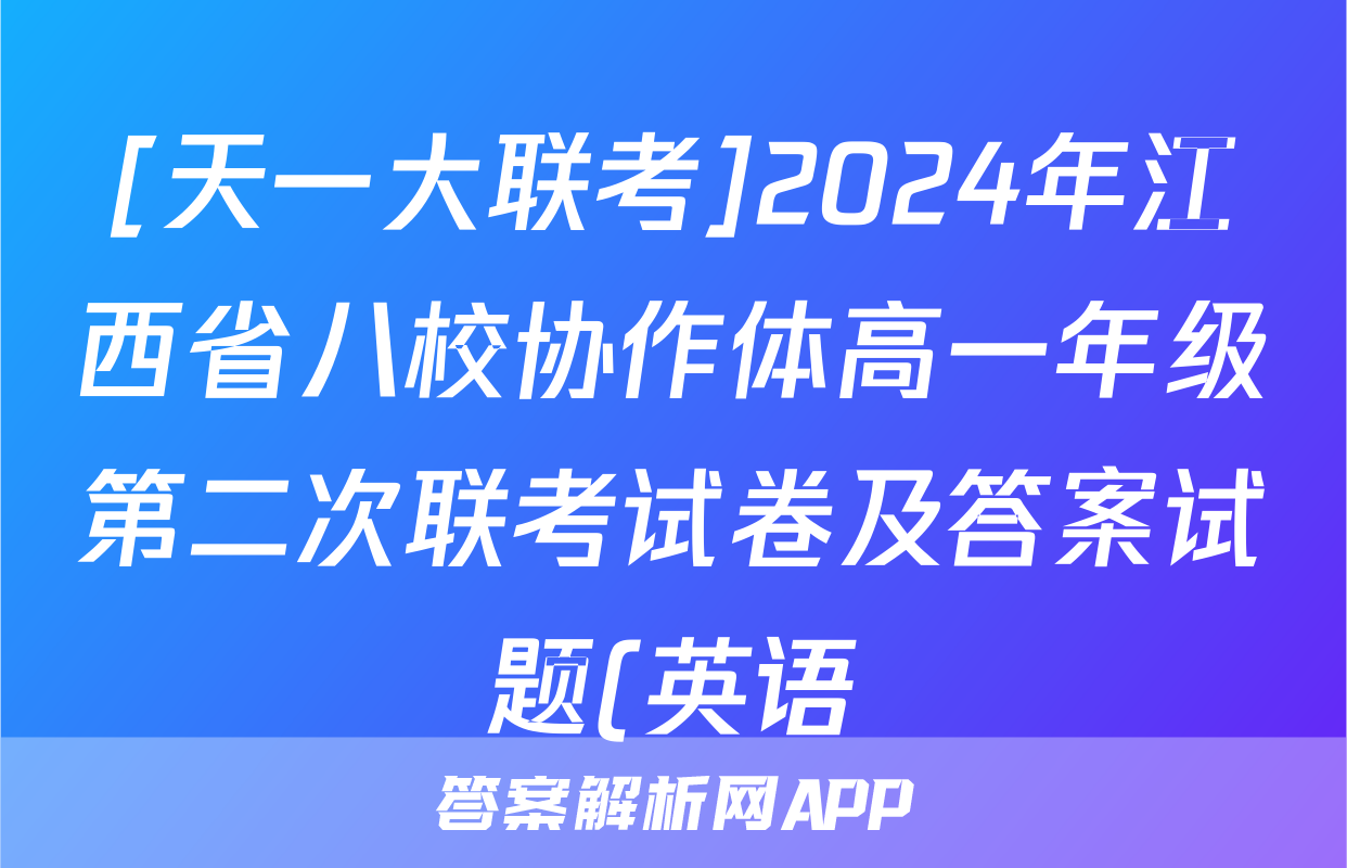 2、[天一大联考]2024年江西省八校协作体高一年级第二次联考试卷及答案答案(英语)