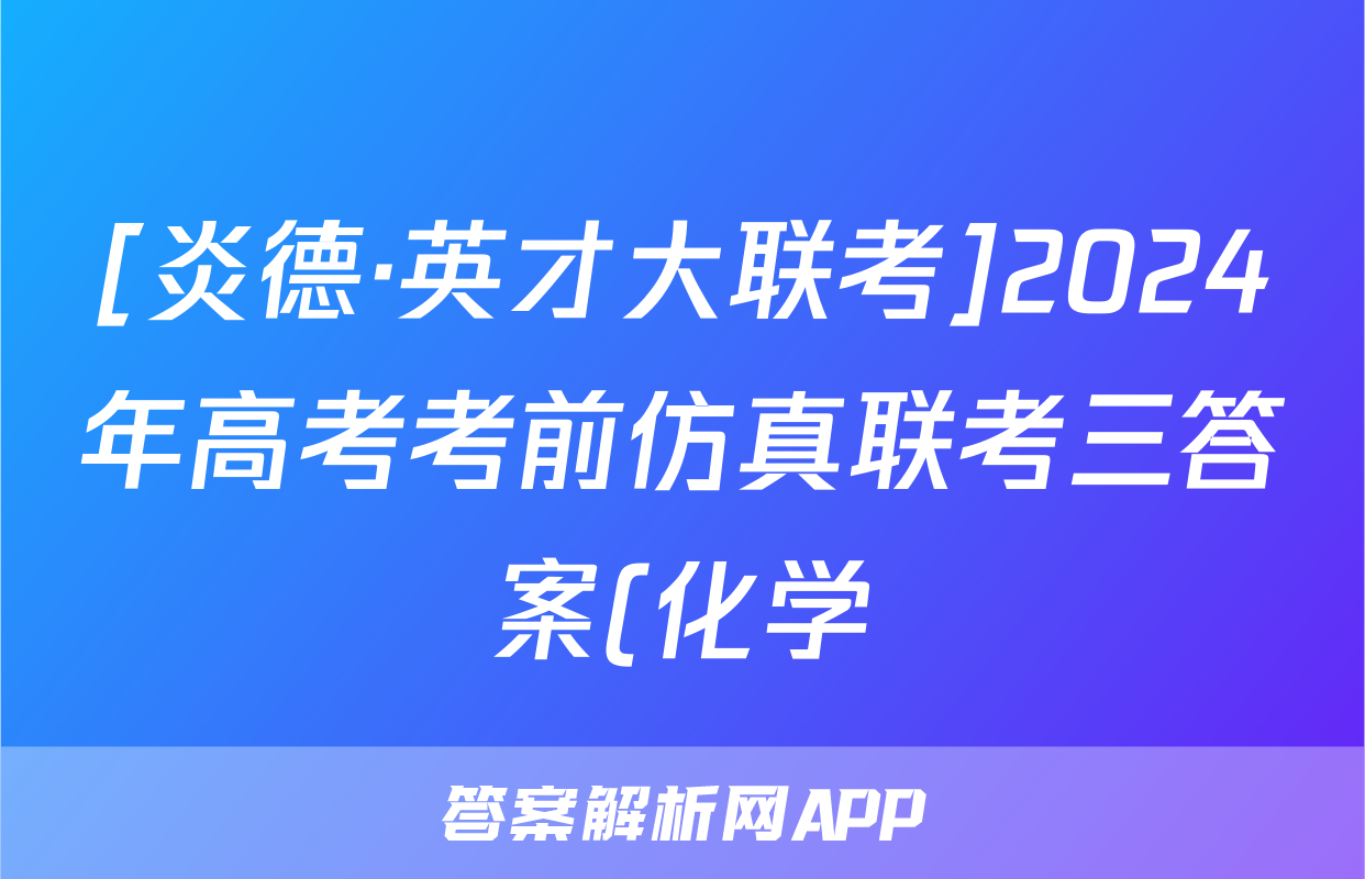 [炎德·英才大联考]2024年高考考前仿真联考三答案(化学)正在持续更新,目前2024-2025英语周报答案网为大家整理了相关试题及答案,供大家查缺补漏,高效提升成绩。