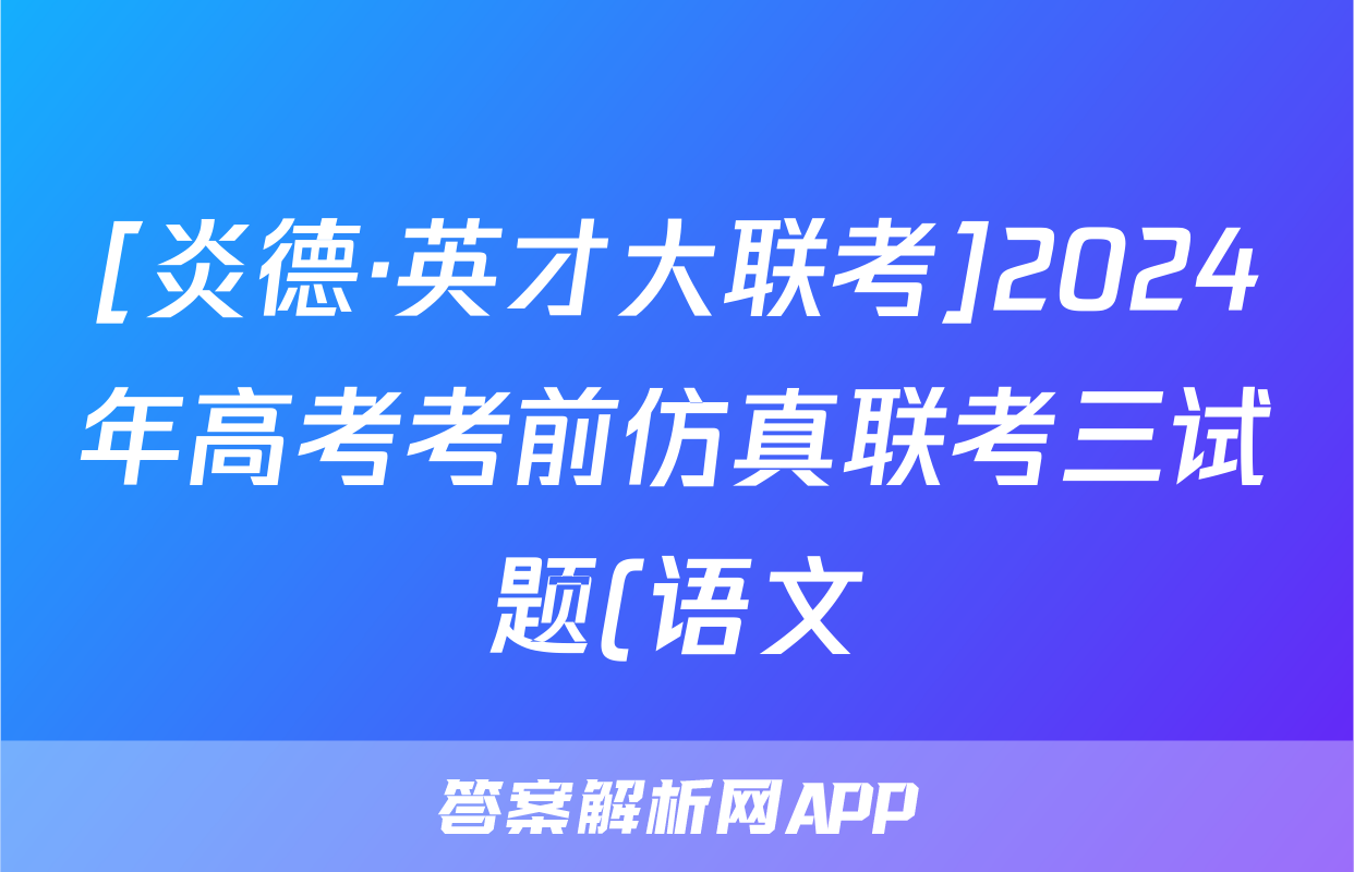 [炎德·英才大联考]2024年高考考前仿真联考三试题(语文)正在持续更新,目前2024-2025英语周报答案网为大家整理了相关试题及答案,供大家查缺补漏,高效提升成绩。