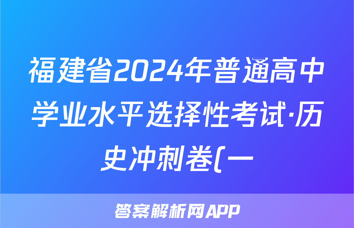 福建省2024年普通高中学业水平选择性考试·历史冲刺卷(一)1[24·(新高考)CCJ·历史·FJ]答案正在持续更新,目前2024-2025英语周报答案网为大家整理了相关试题及答案,供大家查缺补漏,高效提升成绩。