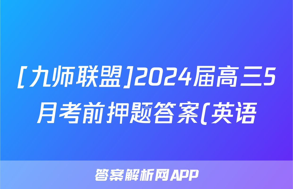 [九师联盟]2024届高三5月考前押题答案(英语)正在持续更新,目前2024-2025英语周报答案网为大家整理了相关试题及答案,供大家查缺补漏,高效提升成绩。