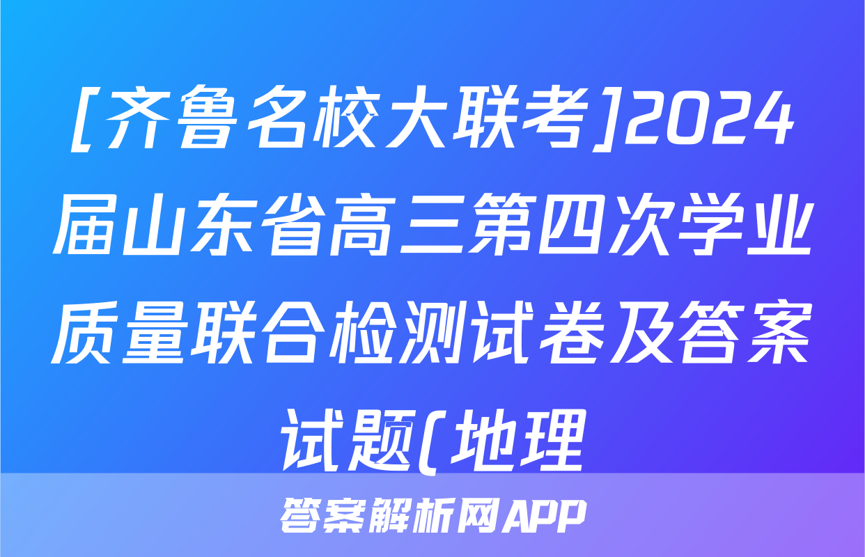 [齐鲁名校大联考]2024届山东省高三第四次学业质量联合检测试卷及答案试题(地理)正在持续更新,目前2024-2025英语周报答案网为大家整理了相关试题及答案,供大家查缺补漏,高效提升成绩。
