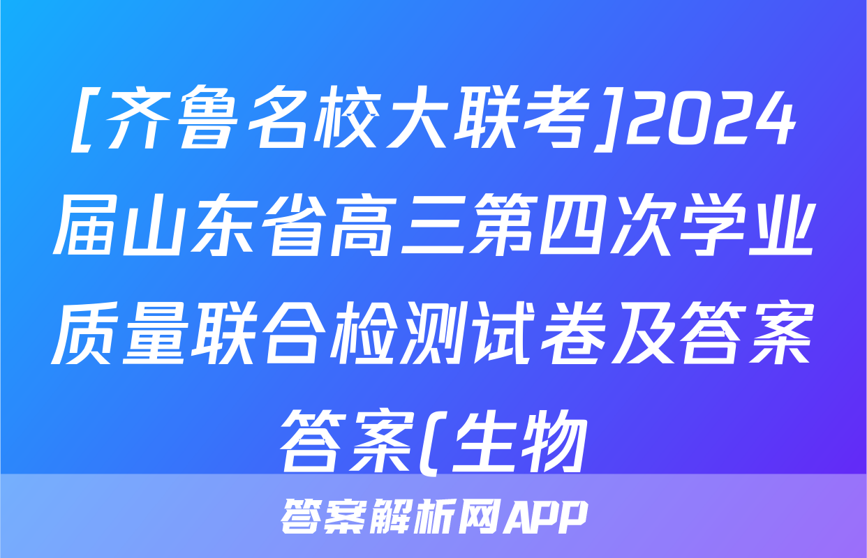 [齐鲁名校大联考]2024届山东省高三第四次学业质量联合检测试卷及答案答案(生物)正在持续更新,目前2024-2025英语周报答案网为大家整理了相关试题及答案,供大家查缺补漏,高效提升成绩。