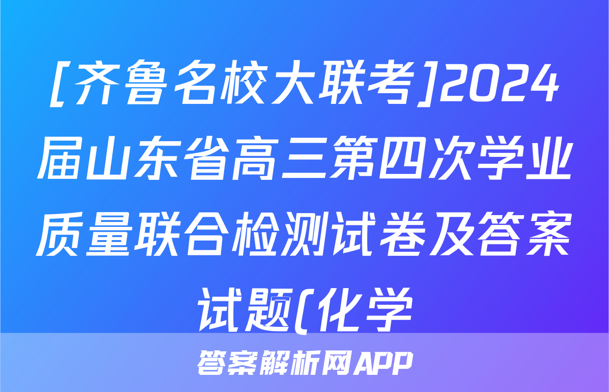 [齐鲁名校大联考]2024届山东省高三第四次学业质量联合检测试卷及答案试题(化学)正在持续更新,目前2024-2025英语周报答案网为大家整理了相关试题及答案,供大家查缺补漏,高效提升成绩。