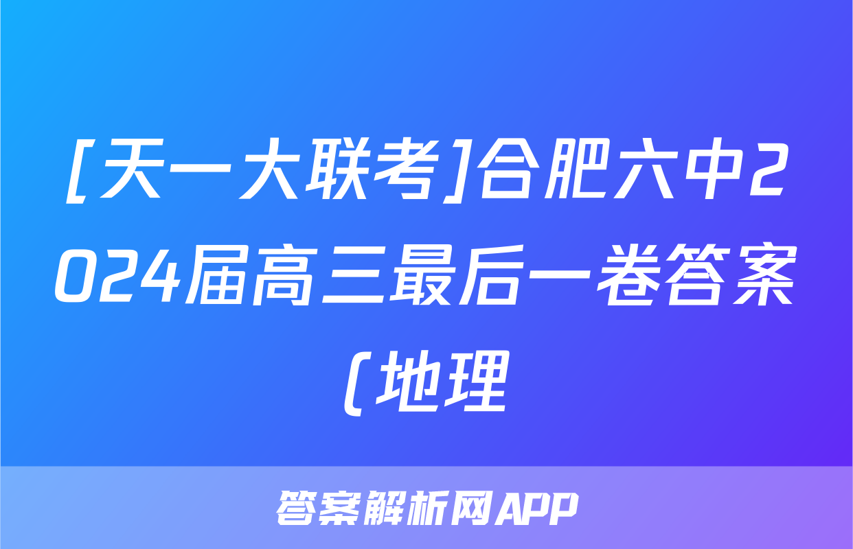[天一大联考]合肥六中2024届高三最后一卷答案(地理)正在持续更新,目前2024-2025英语周报答案网为大家整理了相关试题及答案,供大家查缺补漏,高效提升成绩。
