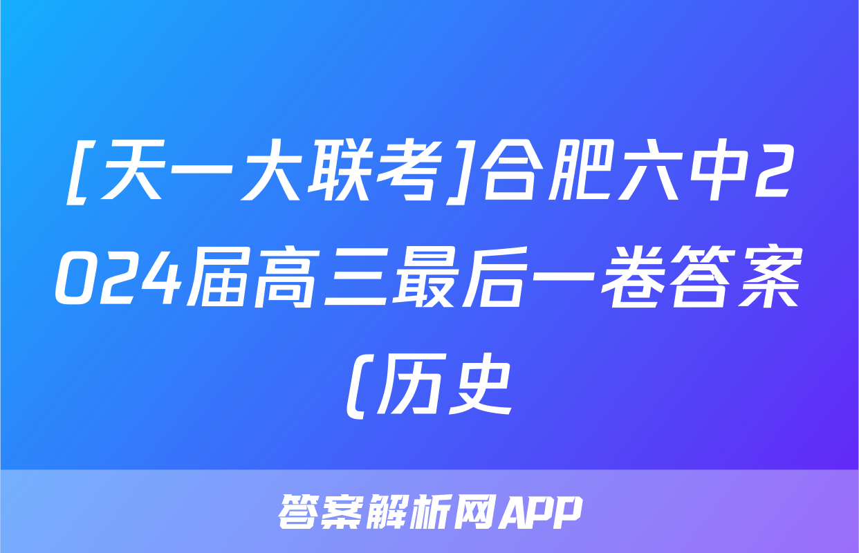 [天一大联考]合肥六中2024届高三最后一卷答案(历史)正在持续更新,目前2024-2025英语周报答案网为大家整理了相关试题及答案,供大家查缺补漏,高效提升成绩。
