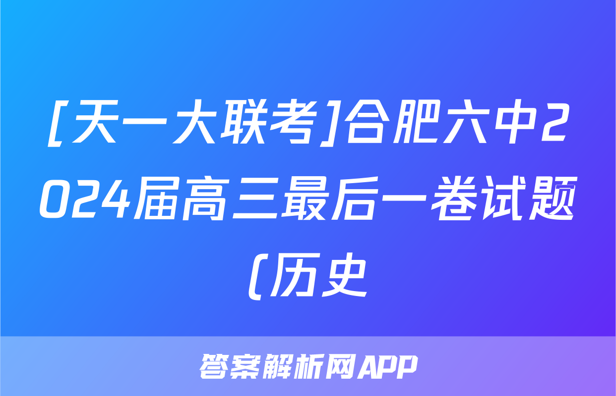 [天一大联考]合肥六中2024届高三最后一卷试题(历史)正在持续更新,目前2024-2025英语周报答案网为大家整理了相关试题及答案,供大家查缺补漏,高效提升成绩。