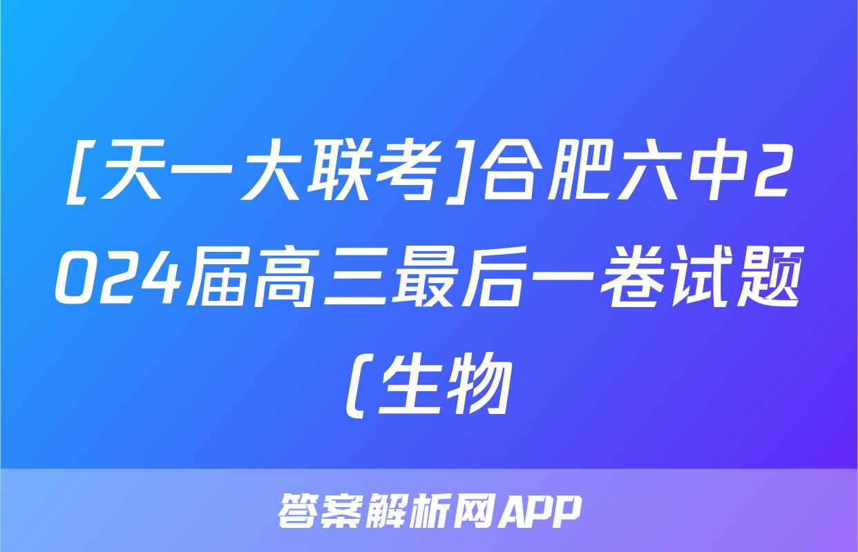 [天一大联考]合肥六中2024届高三最后一卷试题(生物)正在持续更新,目前2024-2025英语周报答案网为大家整理了相关试题及答案,供大家查缺补漏,高效提升成绩。