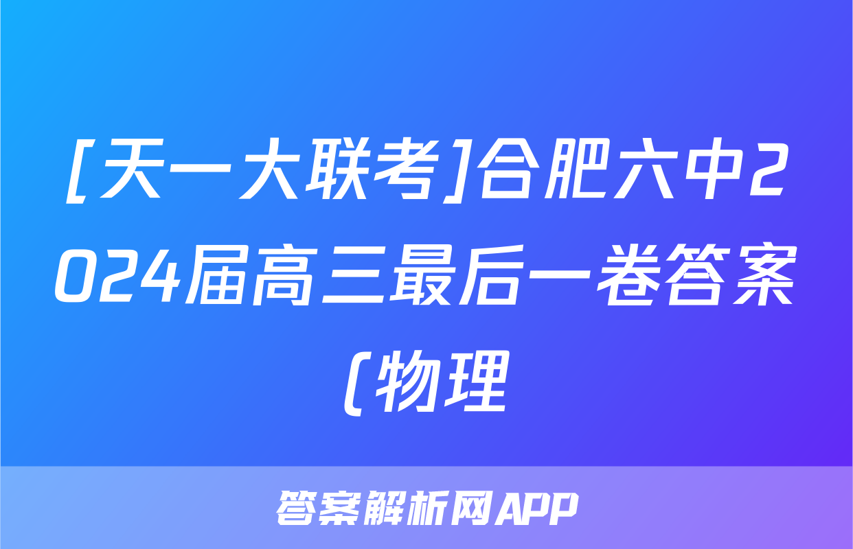 [天一大联考]合肥六中2024届高三最后一卷答案(物理)正在持续更新,目前2024-2025英语周报答案网为大家整理了相关试题及答案,供大家查缺补漏,高效提升成绩。