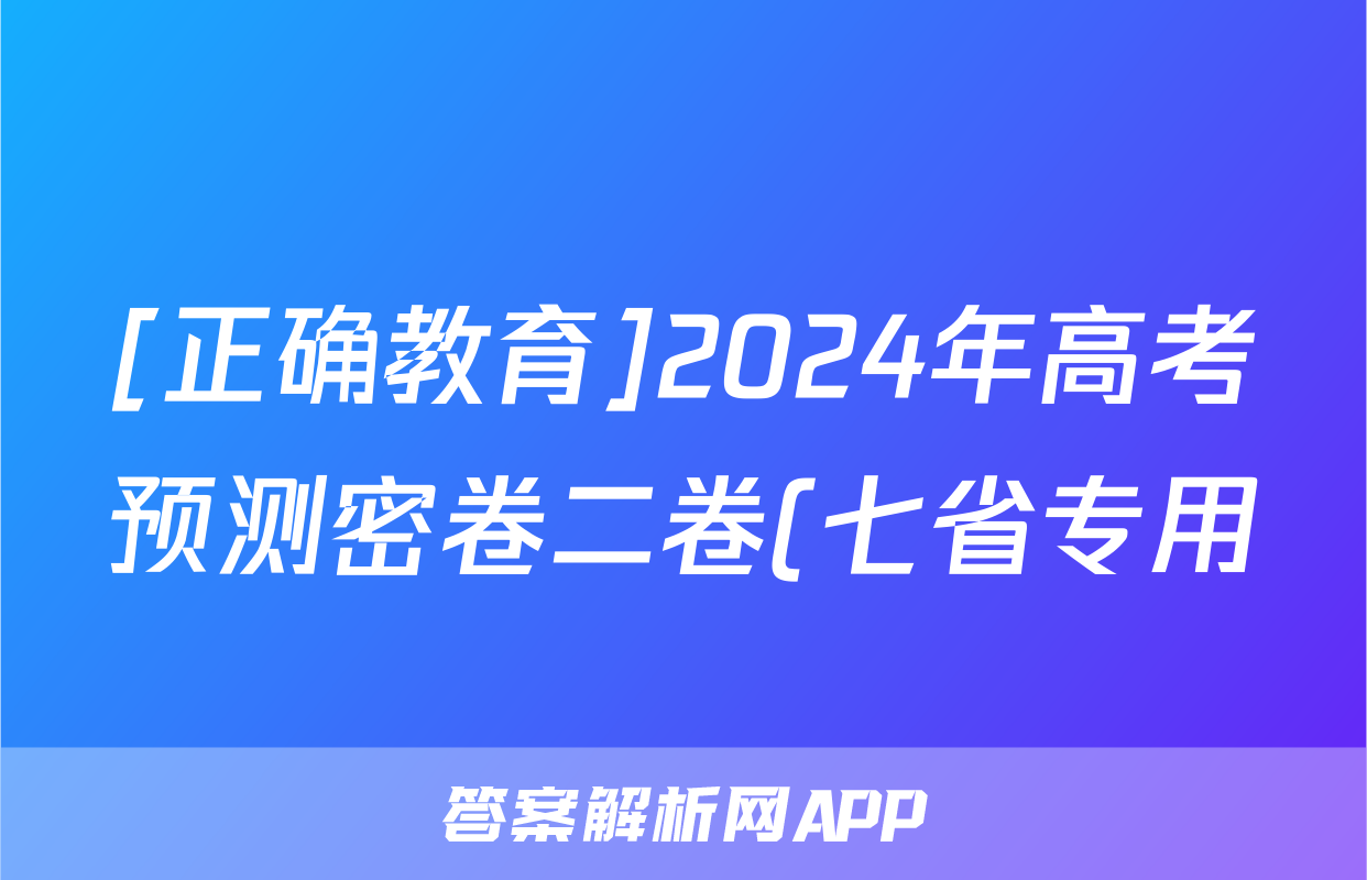 2、[正确教育]2024年高考预测密卷二卷(七省专用)化学(七省)答案