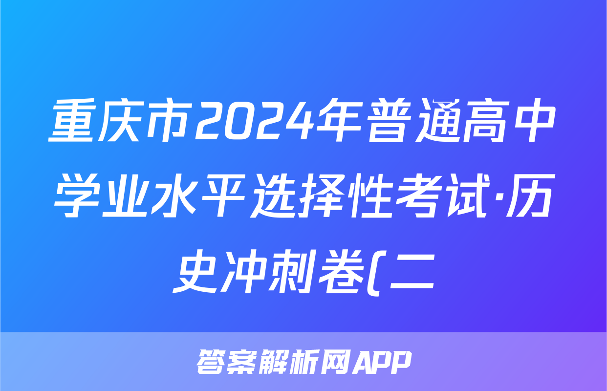 重庆市2024年普通高中学业水平选择性考试·历史冲刺卷(二)2[24·(新高考)CCJ·历史·CQ]答案正在持续更新,目前2024-2025英语周报答案网为大家整理了相关试题及答案,供大家查缺补漏,高效提升成绩。