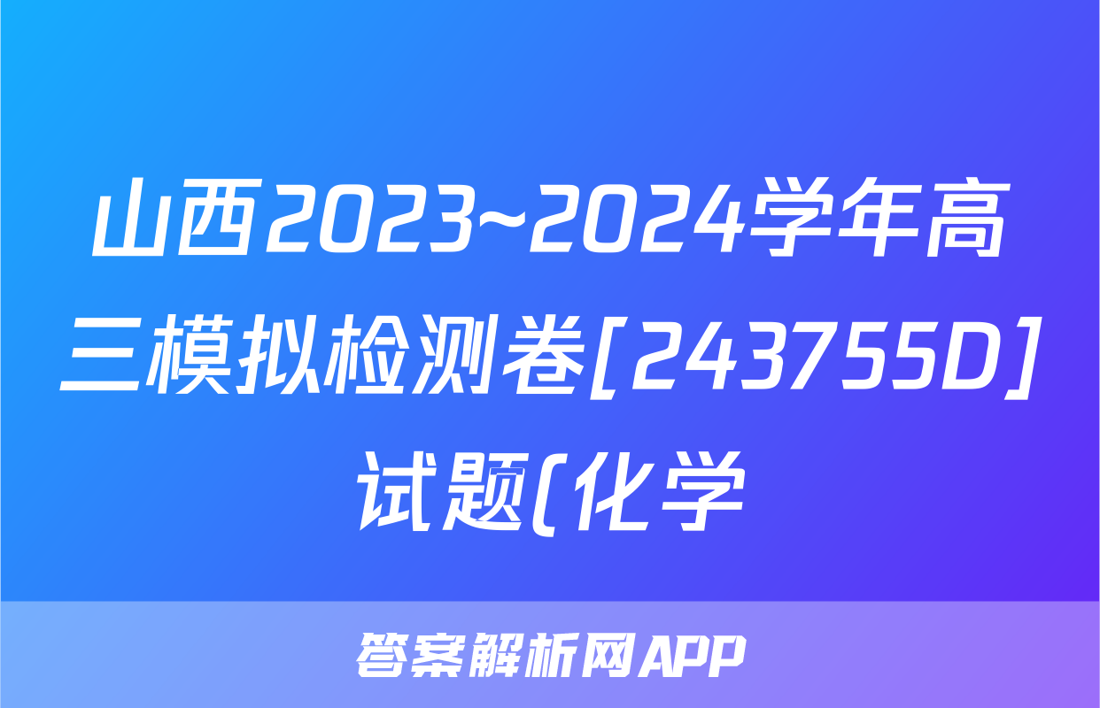 山西2023~2024学年高三模拟检测卷[243755D]试题(化学)正在持续更新,目前2024-2025英语周报答案网为大家整理了相关试题及答案,供大家查缺补漏,高效提升成绩。