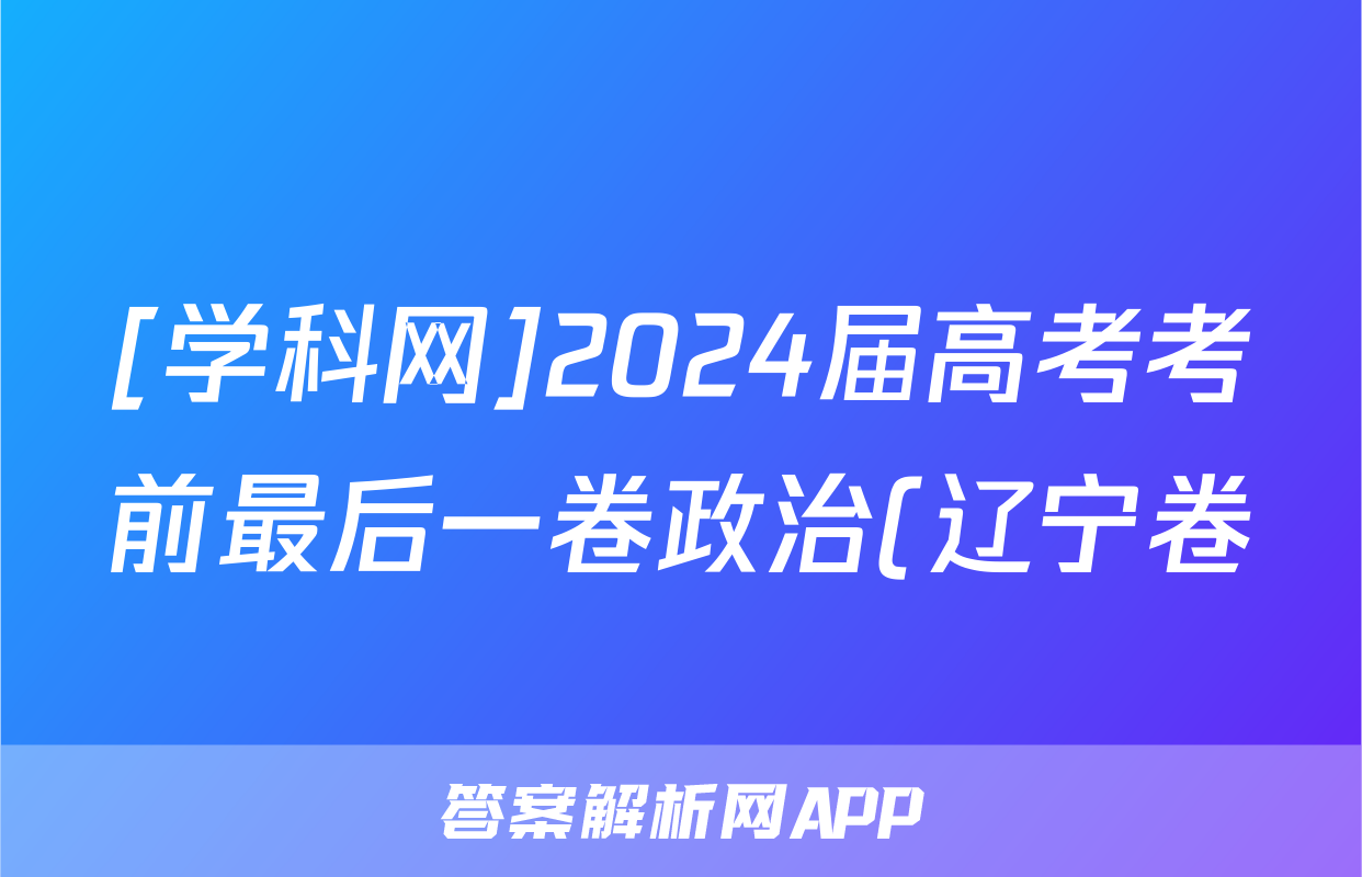 [学科网]2024届高考考前最后一卷政治(辽宁卷)试题正在持续更新,目前2024-2025英语周报答案网为大家整理了相关试题及答案,供大家查缺补漏,高效提升成绩。