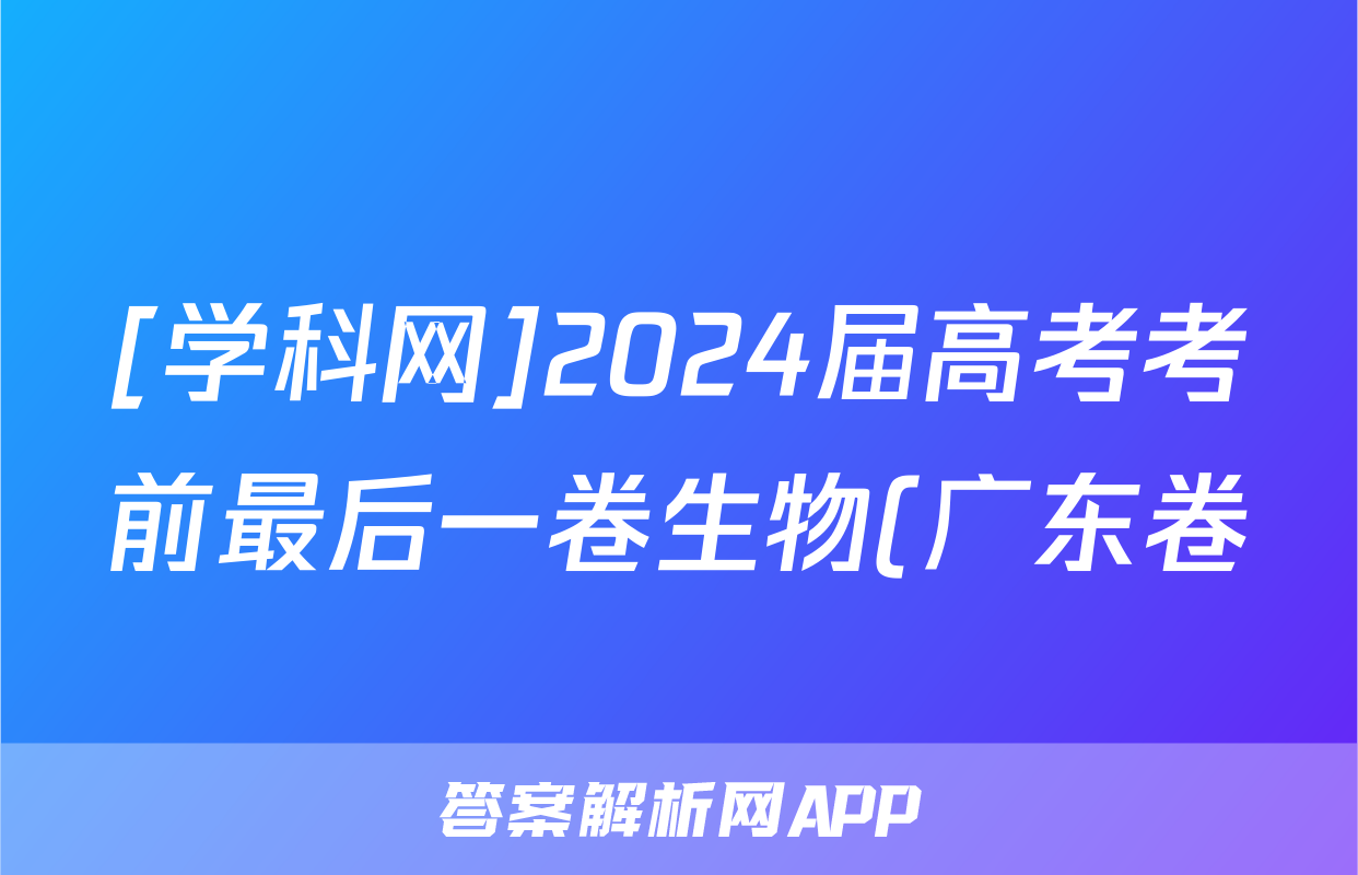 [学科网]2024届高考考前最后一卷生物(广东卷)答案正在持续更新,目前2024-2025英语周报答案网为大家整理了相关试题及答案,供大家查缺补漏,高效提升成绩。