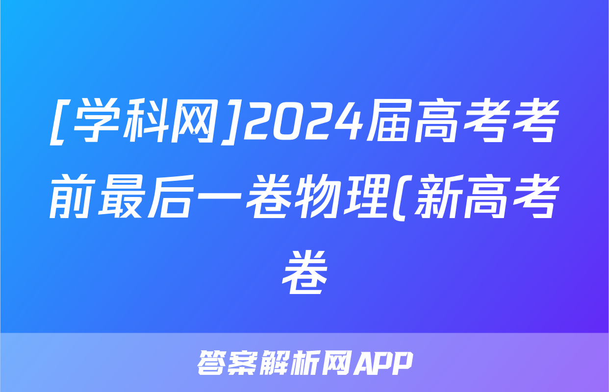 [学科网]2024届高考考前最后一卷物理(新高考卷)(新教材)答案正在持续更新,目前2024-2025英语周报答案网为大家整理了相关试题及答案,供大家查缺补漏,高效提升成绩。