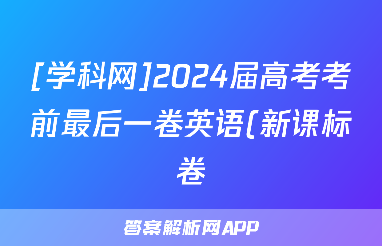 [学科网]2024届高考考前最后一卷英语(新课标卷)试题正在持续更新,目前2024-2025英语周报答案网为大家整理了相关试题及答案,供大家查缺补漏,高效提升成绩。