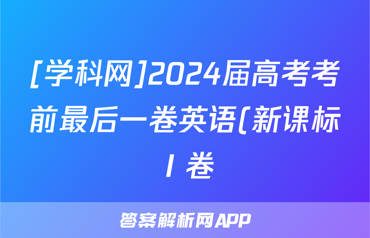 [学科网]2024届高考考前最后一卷英语(新课标Ⅰ卷)(广东专用)答案正在持续更新,目前2024-2025英语周报答案网为大家整理了相关试题及答案,供大家查缺补漏,高效提升成绩。