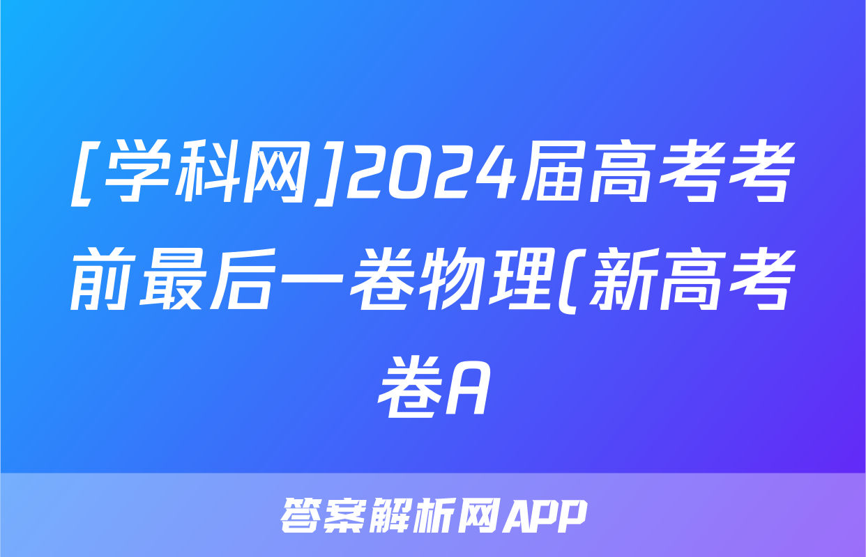 [学科网]2024届高考考前最后一卷物理(新高考卷A)(新教材)试题正在持续更新,目前2024-2025英语周报答案网为大家整理了相关试题及答案,供大家查缺补漏,高效提升成绩。