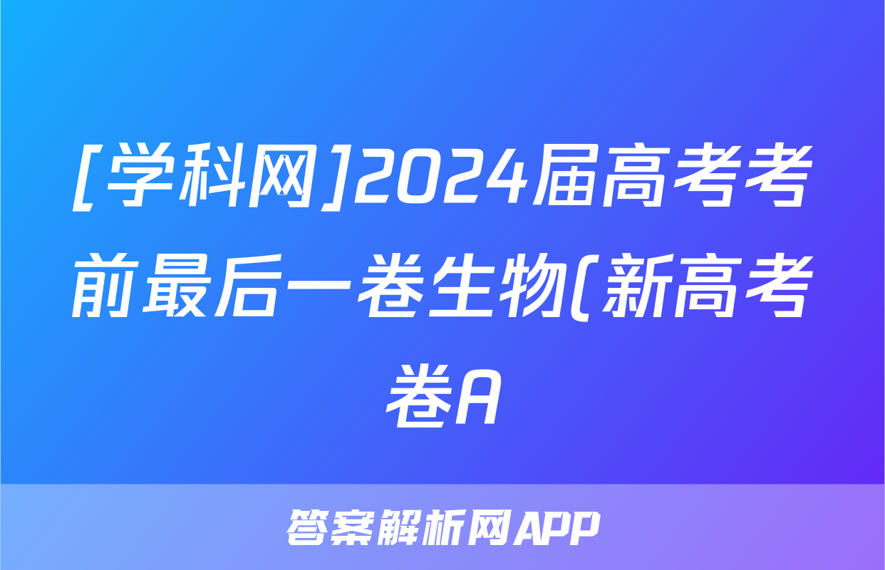 [学科网]2024届高考考前最后一卷生物(新高考卷A)(新教材)试题正在持续更新,目前2024-2025英语周报答案网为大家整理了相关试题及答案,供大家查缺补漏,高效提升成绩。