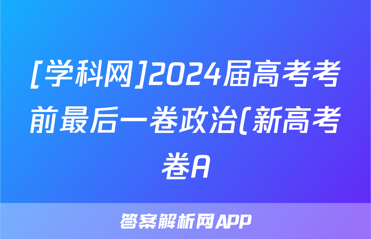[学科网]2024届高考考前最后一卷政治(新高考卷A)(新教材)试题正在持续更新,目前2024-2025英语周报答案网为大家整理了相关试题及答案,供大家查缺补漏,高效提升成绩。