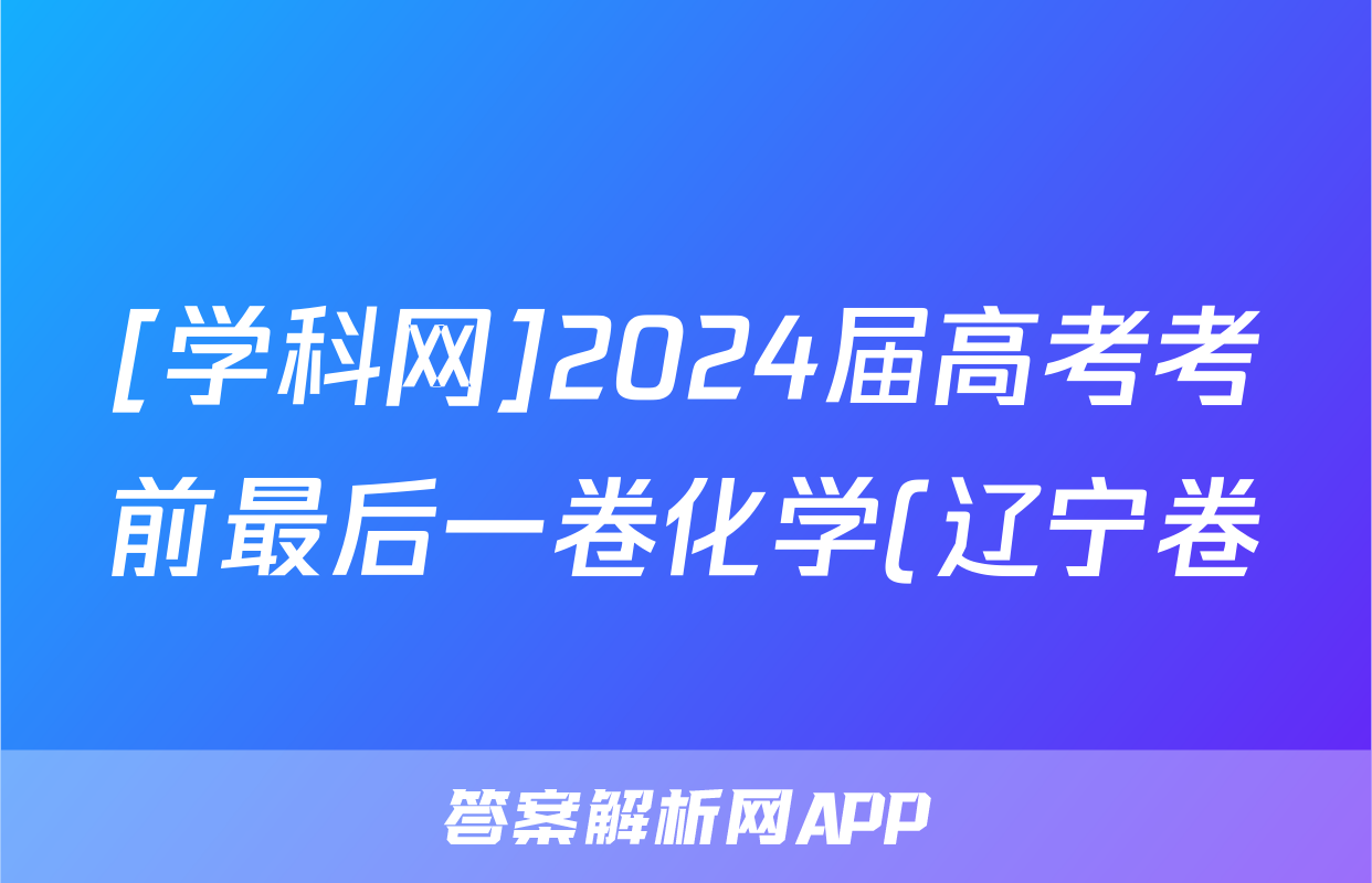 [学科网]2024届高考考前最后一卷化学(辽宁卷)试题正在持续更新,目前2024-2025英语周报答案网为大家整理了相关试题及答案,供大家查缺补漏,高效提升成绩。