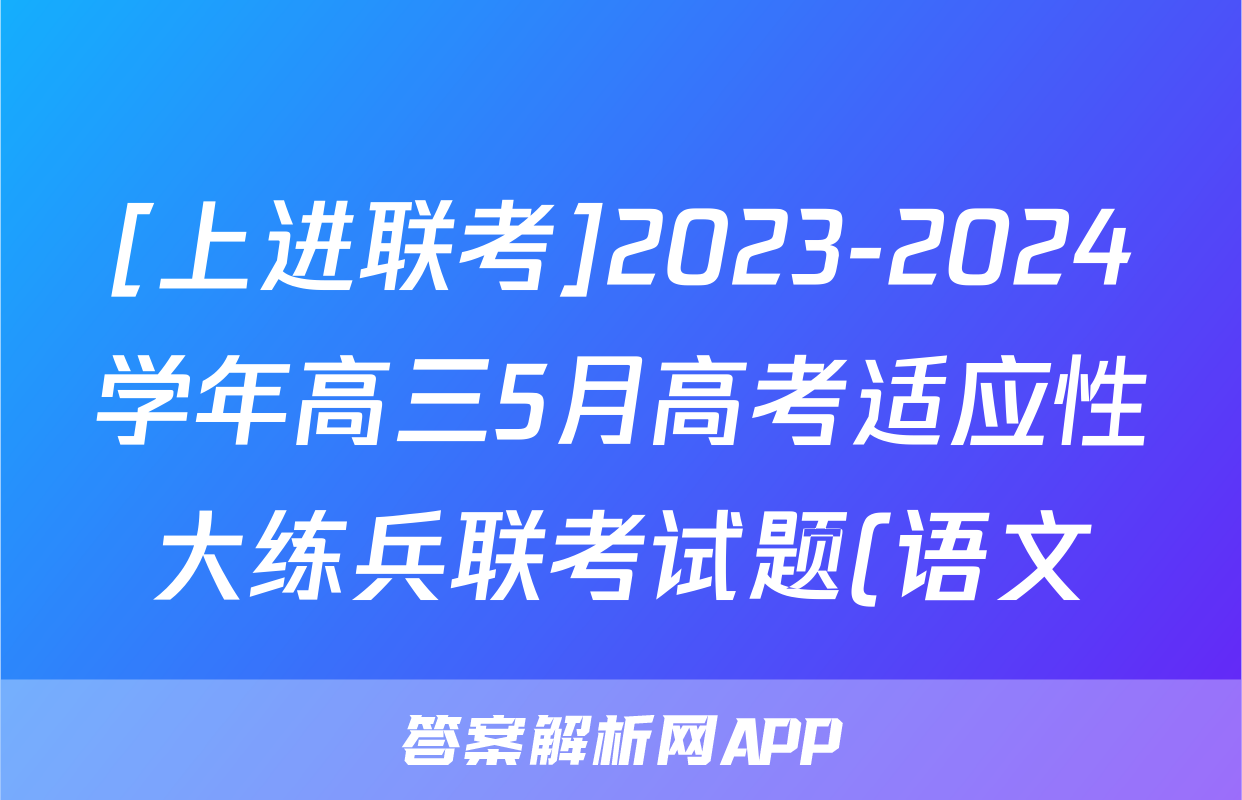 [上进联考]2023-2024学年高三5月高考适应性大练兵联考试题(语文)正在持续更新,目前2024-2025英语周报答案网为大家整理了相关试题及答案,供大家查缺补漏,高效提升成绩。