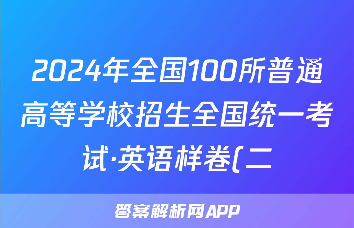 2024年全国100所普通高等学校招生全国统一考试·英语样卷(二)2[24·(新高考)高考样卷·英语·G DONG]答案正在持续更新,目前2024-2025英语周报答案网为大家整理了相关试题及答案,供大家查缺补漏,高效提升成绩。