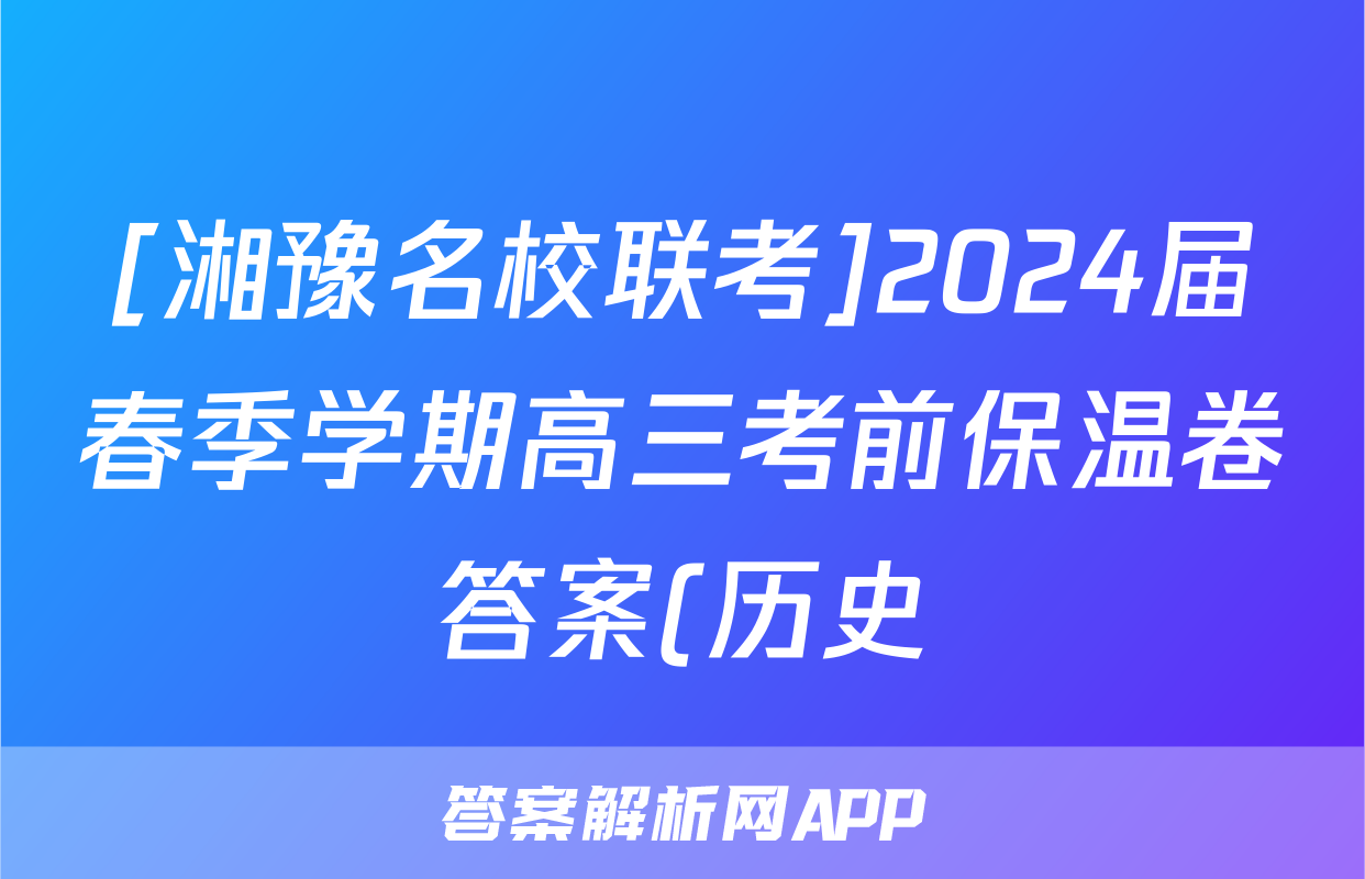 [湘豫名校联考]2024届春季学期高三考前保温卷答案(历史)正在持续更新,目前2024-2025英语周报答案网为大家整理了相关试题及答案,供大家查缺补漏,高效提升成绩。
