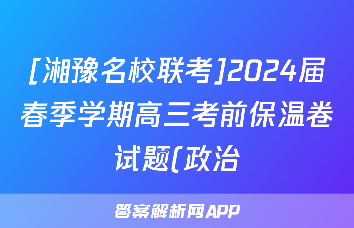 [湘豫名校联考]2024届春季学期高三考前保温卷试题(政治)正在持续更新,目前2024-2025英语周报答案网为大家整理了相关试题及答案,供大家查缺补漏,高效提升成绩。