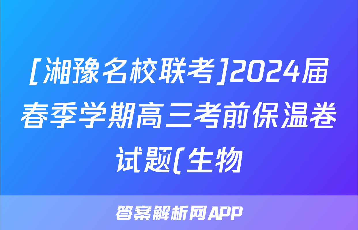 [湘豫名校联考]2024届春季学期高三考前保温卷试题(生物)正在持续更新,目前2024-2025英语周报答案网为大家整理了相关试题及答案,供大家查缺补漏,高效提升成绩。