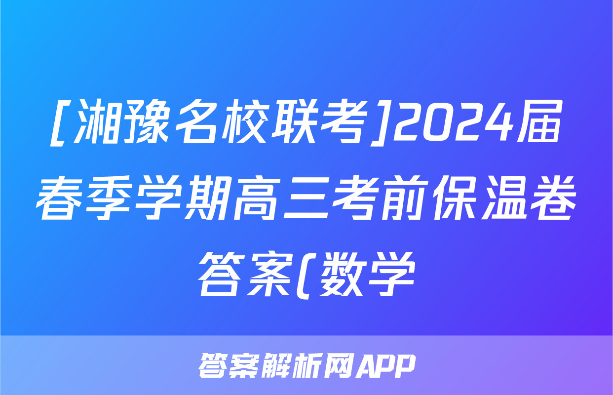 [湘豫名校联考]2024届春季学期高三考前保温卷答案(数学)正在持续更新,目前2024-2025英语周报答案网为大家整理了相关试题及答案,供大家查缺补漏,高效提升成绩。