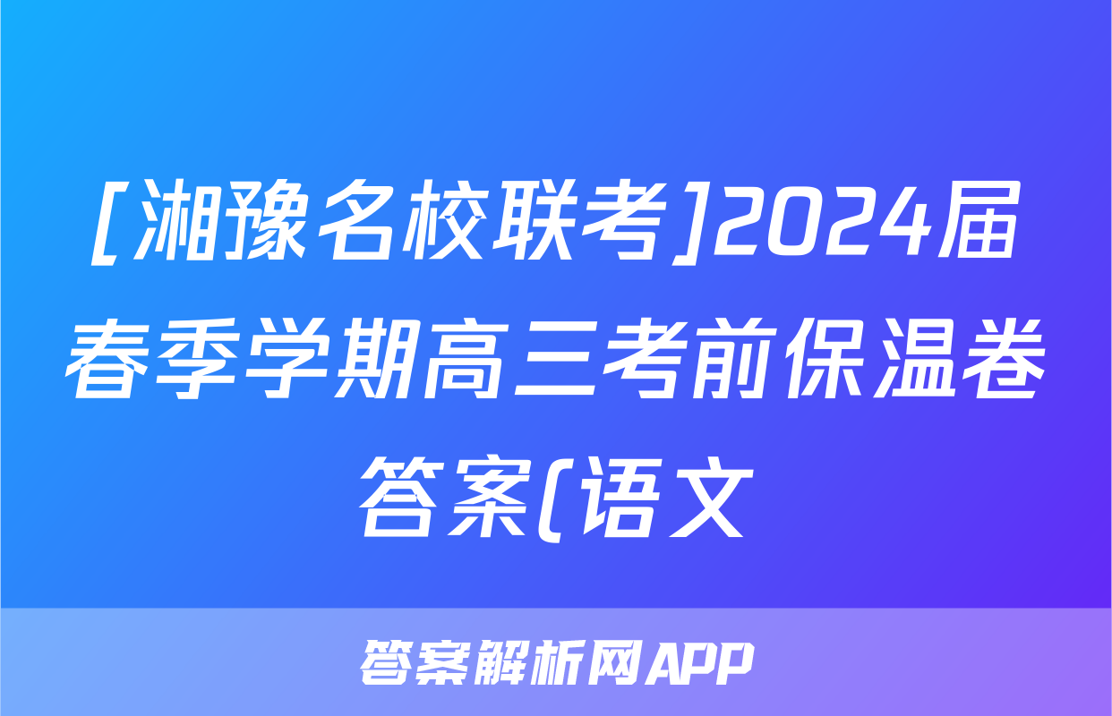 [湘豫名校联考]2024届春季学期高三考前保温卷答案(语文)正在持续更新,目前2024-2025英语周报答案网为大家整理了相关试题及答案,供大家查缺补漏,高效提升成绩。