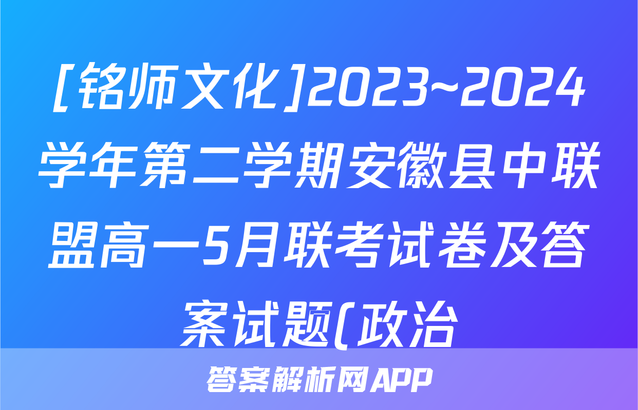 [铭师文化]2023~2024学年第二学期安徽县中联盟高一5月联考试卷及答案试题(政治)正在持续更新,目前2024-2025英语周报答案网为大家整理了相关试题及答案,供大家查缺补漏,高效提升成绩。
