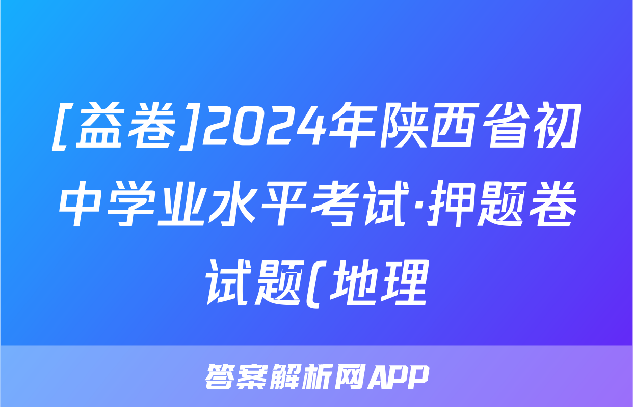 [益卷]2024年陕西省初中学业水平考试·押题卷试题(地理)正在持续更新,目前2024-2025英语周报答案网为大家整理了相关试题及答案,供大家查缺补漏,高效提升成绩。