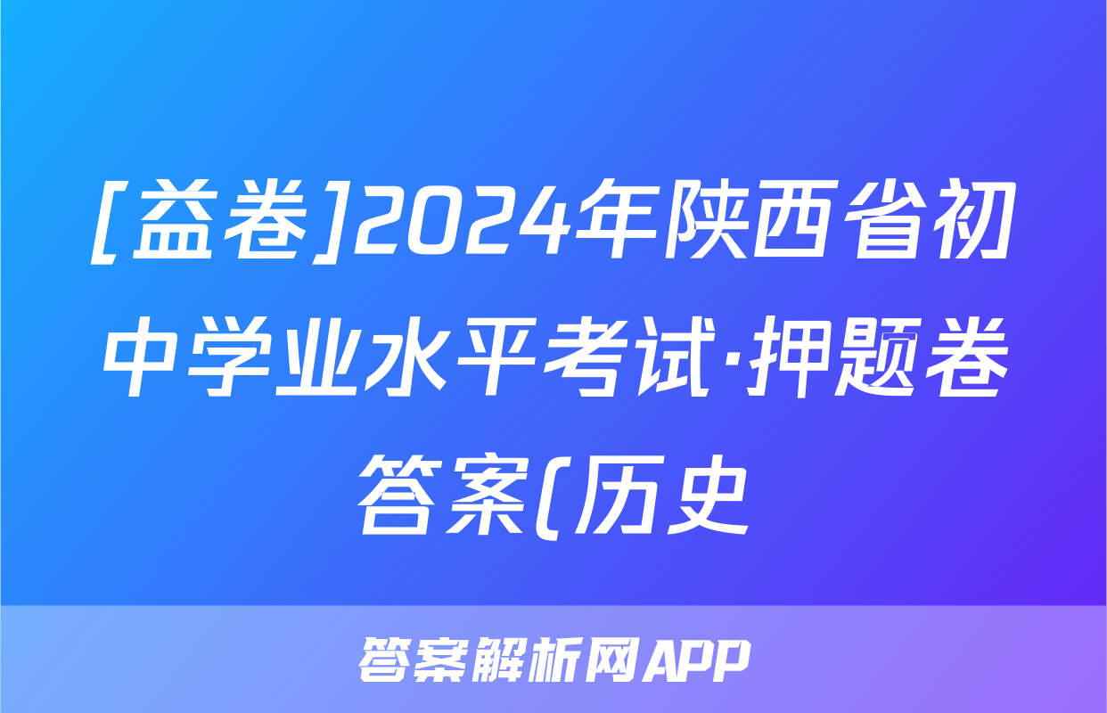 [益卷]2024年陕西省初中学业水平考试·押题卷答案(历史)正在持续更新,目前2024-2025英语周报答案网为大家整理了相关试题及答案,供大家查缺补漏,高效提升成绩。