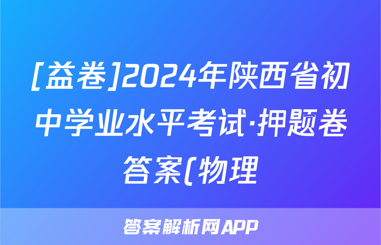 [益卷]2024年陕西省初中学业水平考试·押题卷答案(物理)正在持续更新,目前2024-2025英语周报答案网为大家整理了相关试题及答案,供大家查缺补漏,高效提升成绩。