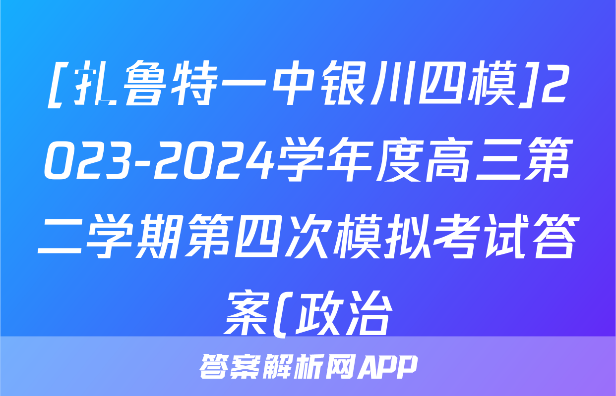 [扎鲁特一中银川四模]2023-2024学年度高三第二学期第四次模拟考试答案(政治)正在持续更新,目前2024-2025英语周报答案网为大家整理了相关试题及答案,供大家查缺补漏,高效提升成绩。