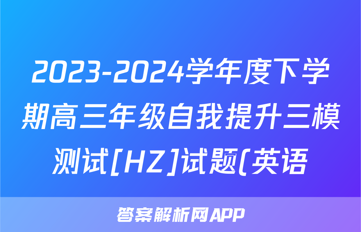 2023-2024学年度下学期高三年级自我提升三模测试[HZ]试题(英语)正在持续更新,目前2024-2025英语周报答案网为大家整理了相关试题及答案,供大家查缺补漏,高效提升成绩。