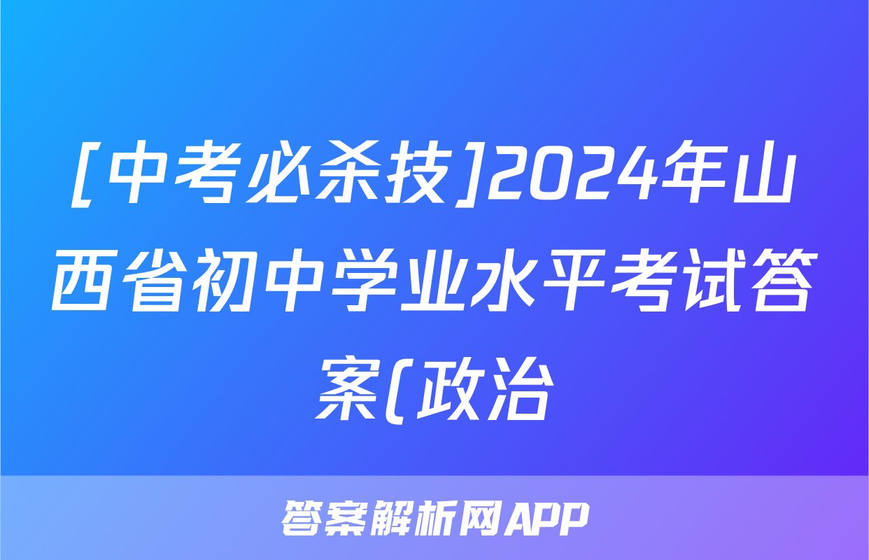 [中考必杀技]2024年山西省初中学业水平考试答案(政治)正在持续更新,目前2024-2025英语周报答案网为大家整理了相关试题及答案,供大家查缺补漏,高效提升成绩。