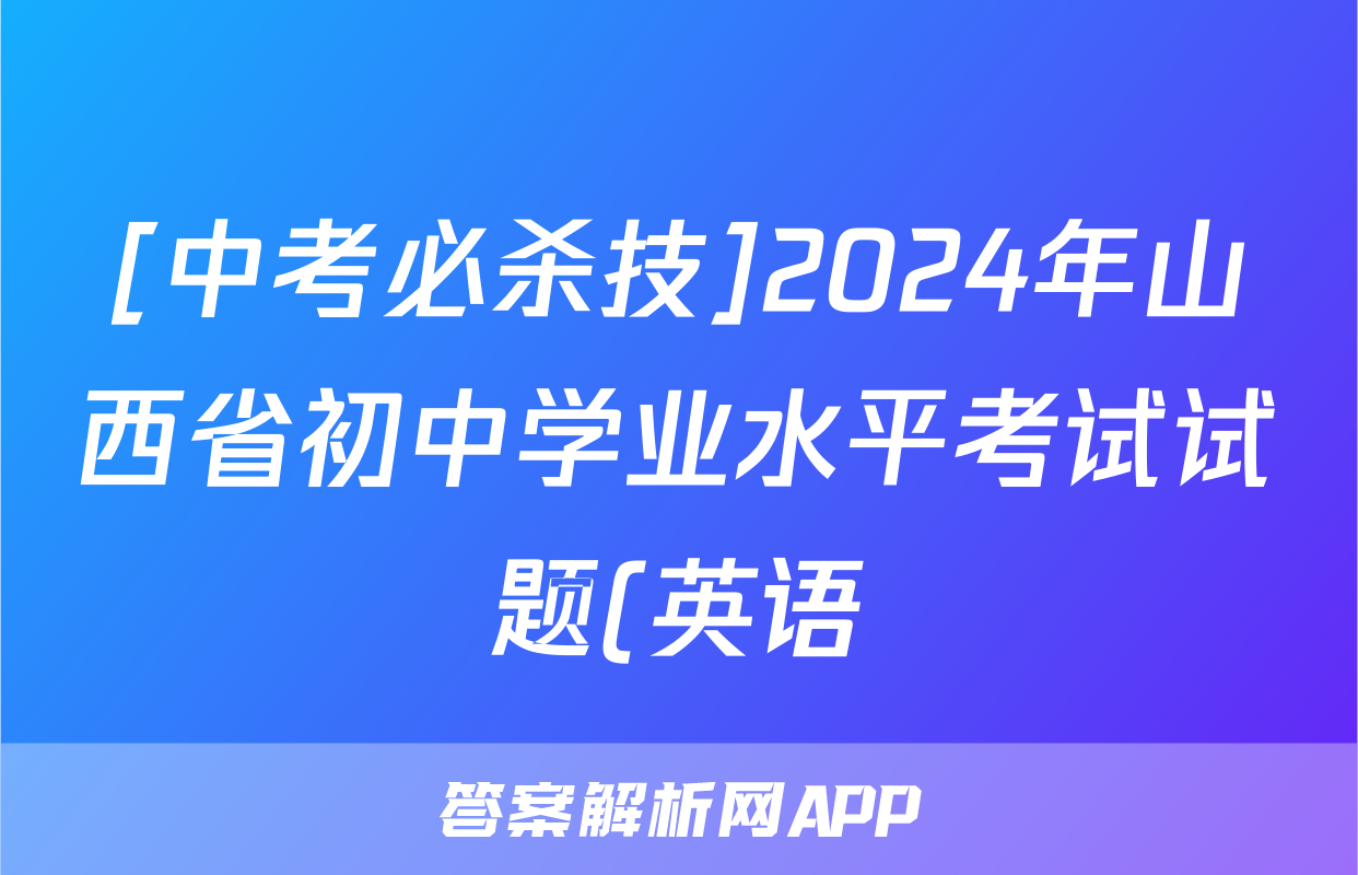 [中考必杀技]2024年山西省初中学业水平考试试题(英语)